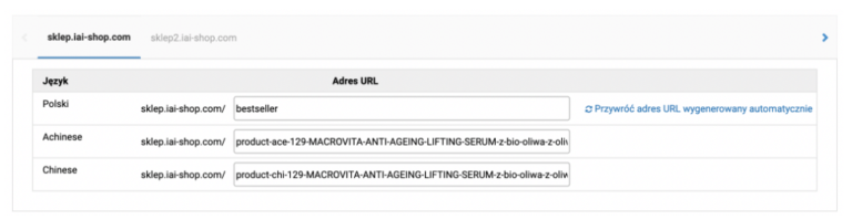 W sklepie zbudowanym na platformie IdoSell adres URL ustawisz na karcie w zakładce Marketing i SEO. Dotyczy to zarówno produktów, kategorii, jak i artykułów blogowych czy elementów menu. Właściciele sklepów mają do wyboru siedem schematów konfiguracji struktury adresów. Strukturę linków zmienisz w sekcji SEO → Optymalizacja do wyszukiwarek → Ustawienia struktury przyjaznych adresów URL dla stron w sklepie. Co się stanie z linkami z poprzedniej struktury? Platforma zapewni im przekierowanie 301.