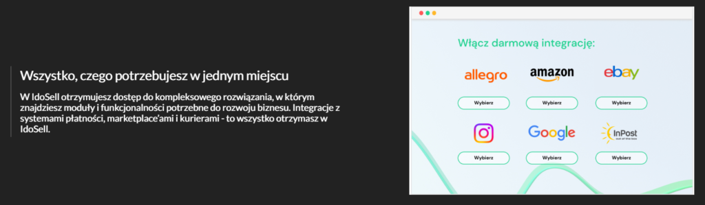 W mojej ocenie platforma IdoSell sprawdzi się zarówno w przypadku mniejszych, początkujących sklepów, które mają w planach dynamiczny rozwój, jak i większych biznesów e-commerce. IdoSell pozwala włączyć darmową integrację z kluczowymi dla polskich klientów marketplace’ami, w tym Allegro, Amazon i eBay. Platforma umożliwia również inne integracje gotowe do włączenia jednym kliknięciem, co usprawnia prowadzenie sklepu. Chodzi między innymi o integrację z firmami kurierskimi i systemami płatności, co jest absolutną podstawą dla e-commerce. Dzięki swoim rozwiązaniom IdoSell świetnie sprawdzi się jako platforma do sprzedaży hurtowej.