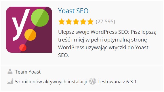 Jest to najpopularniejsza wtyczka WordPressa, która wspiera pozycjonowanie sklepu na WooCommerce. Dla wielu osób jest wręcz synonimem działań SEO dla stron postawionych na WordPressie. Pozwala na rozbudowę domyślnych konfiguracji w CMS-ie, z czego korzystają zarówno właściciele sklepów, jak i innych stron internetowych, w tym blogów, z których wyrosła platforma. Wtyczka jest dostępna bezpłatnie oraz w wersji premium, która umożliwia między innymi rekomendacje dotyczące linkowania wewnętrznego (na podstawie tworzonej przez Ciebie treści sugeruje, jakie podstrony są z nią powiązane), ustawienie przekierowań oraz wsparcie w tworzeniu naturalniejszych treści.